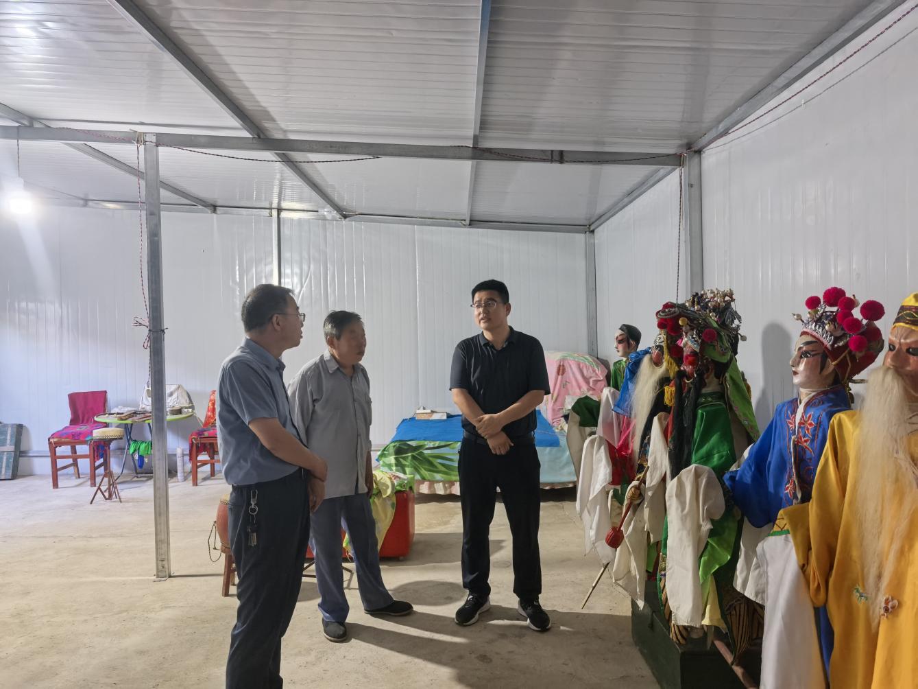 随后,李凡章深入周家镇周家村、梁家村,实地参观了周兴平、梁忠仓木偶戏的排练厅与相关展品。走访过程中,非遗传承人介绍了木偶戏非遗项目及其发展现状,重点调研了非遗项目知识产权保护、传承断代、发展经费困难、保护缺位等问题,并就如何发挥检察职能,依法开展监督,精准对接非遗文化保护与检察机关职能结合点,推动相关部门履职尽责,更好共同守护和传承好非物质文化遗产进行了深入探讨。李凡章强调,要深刻认识非遗保护对于文化自信自强的重要性,要聚焦非遗保护中的痛点、难点、重点,关注传承场所保障、传承人权益维护、非遗项目知识产权保护等领域,探索运用法治手段保障其合法权益,协助改善传承条件。